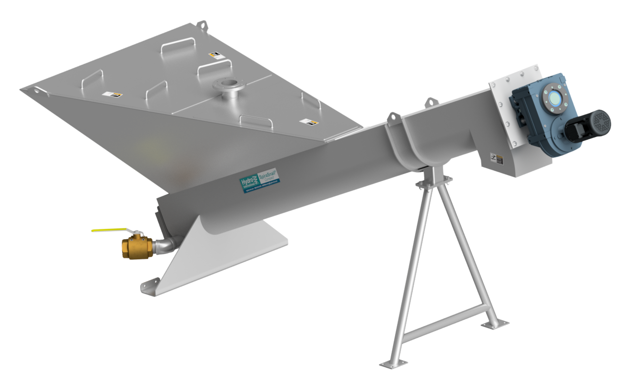 The SpiraSnail® Compact uses the same shafted screw design as the original SpiraSnail® but has a smaller footprint and is also shorter than the standard SpiraSnail®. Stainless steel construction and a heavy-duty screw provide years of reliable service while eliminating the need for washwater. By limiting design influent flows to ≤ 125 gpm (7.9 L/s) the SpiraSnail® Compact can achieve 95% capture of all grit 106 micron and larger.