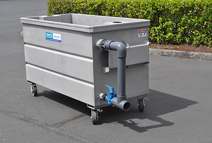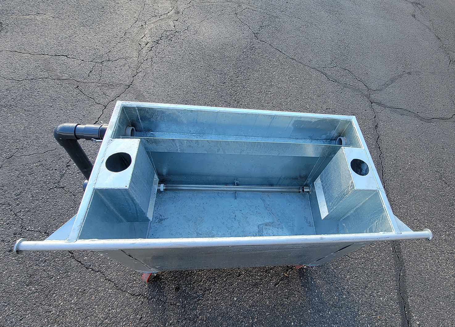 Heavy-duty casters make the Grit Decanter highly portable, meaning that multiple units may be easily used in conjunction. When one unit is filled, it can be moved aside to wait for the arrival of disposal trucks while a standby unit can be easily wheeled into place.