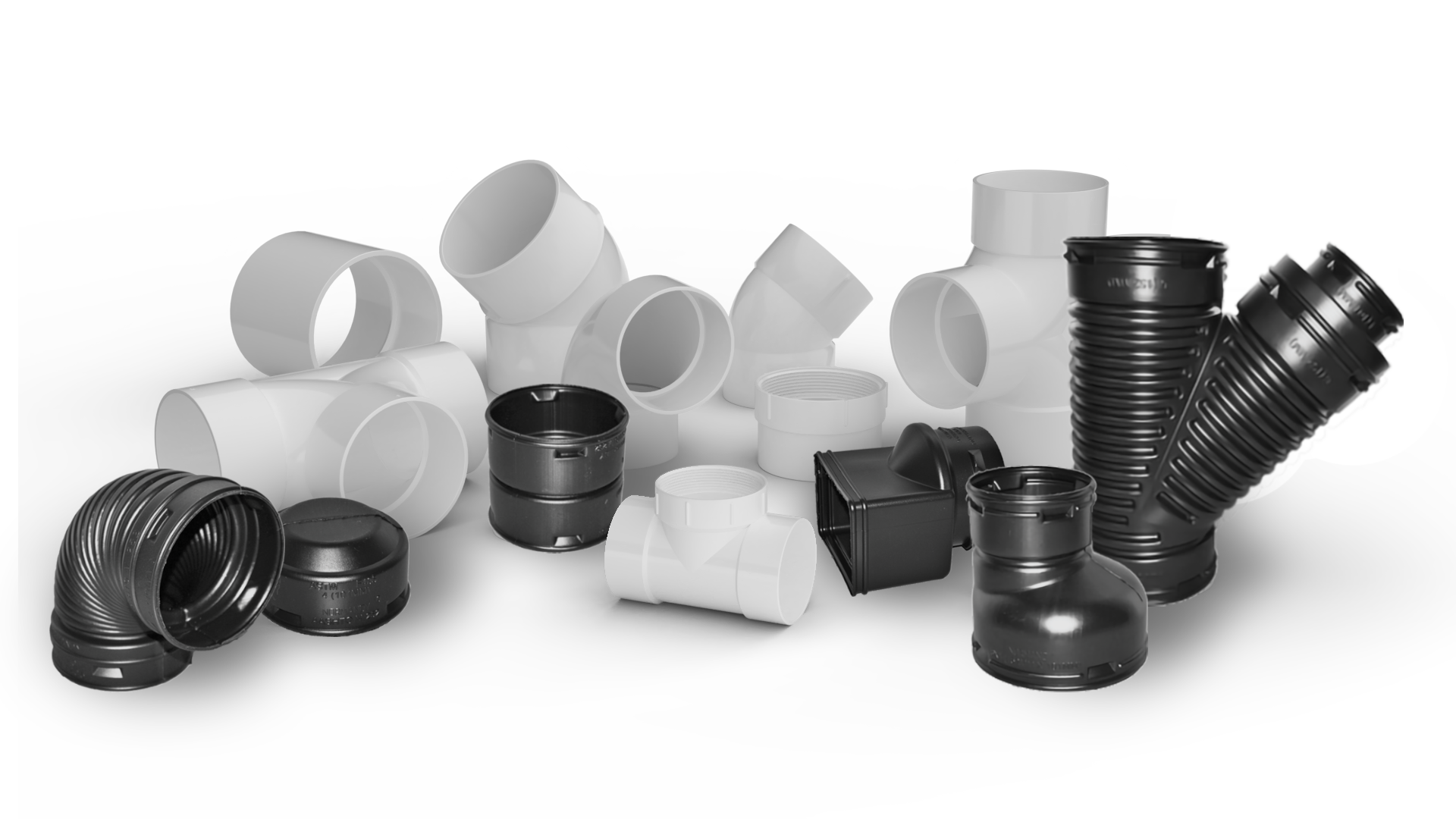 Material: Corrugated HDPE (C-Series), Solvent Weld PVC (V-Series)